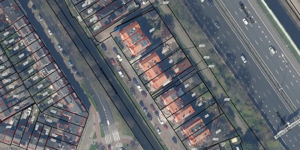 Delfgauwseweg 100 is gelegen op kadastraal perceel DEL00I974. Deze kadastrale aanduiding is uniek en wordt gebruikt door het Kadaster om eigendomsrechten en andere zakelijke rechten vast te leggen. Het perceel maakt onderdeel uit van de kadastrale gemeente Delft.