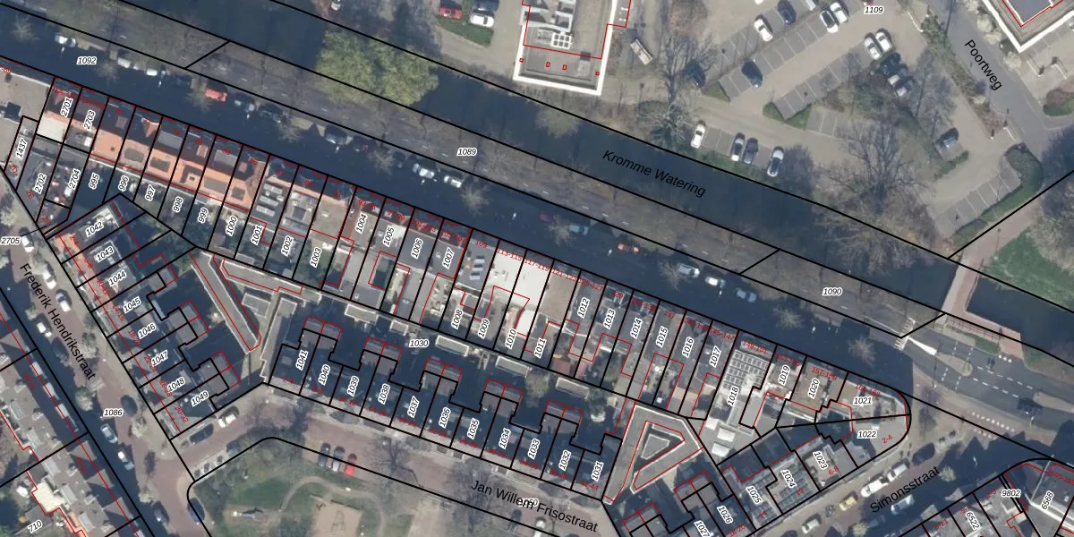 Het adres is gelegen op perceel 1010 in de sectie P en de kadastrale gemeente Delft. De kadastrale aanduiding is aldus DEL00-P-1010. Het perceel is kleiner dan gemiddeld in Delft. Het perceel is 107 m² groot, terwijl het gemiddelde ligt op 923,41 m². De grootste perceeloppervlakte in de kadastrale gemeente is 64,1 ha. De kleinste oppervlakte bedraagt 0 m². Er zijn 2 adressen aanwezig op het perceel. In de Basisregistratie Kadaster (BRK) werden de grenzen van het perceel geregistreerd op 06-02-1998.
