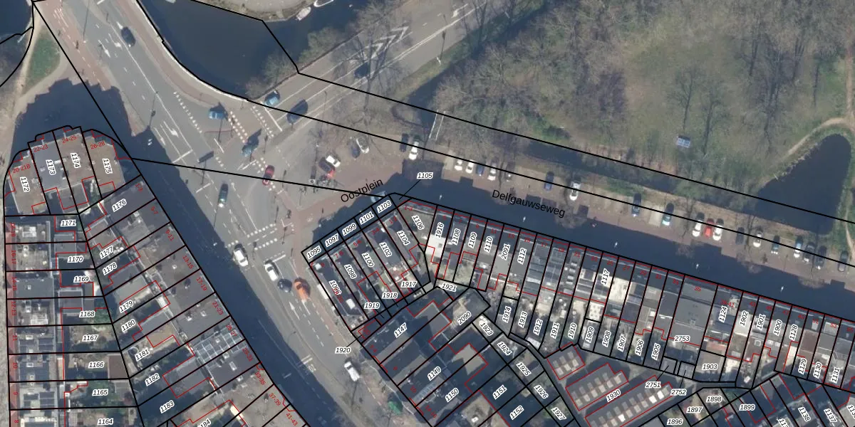 Het adres is gelegen op perceel 1106 in de sectie P en de kadastrale gemeente Delft. De kadastrale aanduiding is aldus DEL00-P-1106. Het perceel is kleiner dan gemiddeld in Delft. Het perceel is 62 m² groot, terwijl het gemiddelde ligt op 924,72 m². De grootste perceeloppervlakte in de kadastrale gemeente is 64,1 ha. De kleinste oppervlakte bedraagt 0 m². Op het perceel zijn 2 adressen aanwezig. In de Basisregistratie Kadaster (BRK) werden de grenzen van het perceel geregistreerd op 23-02-2004.