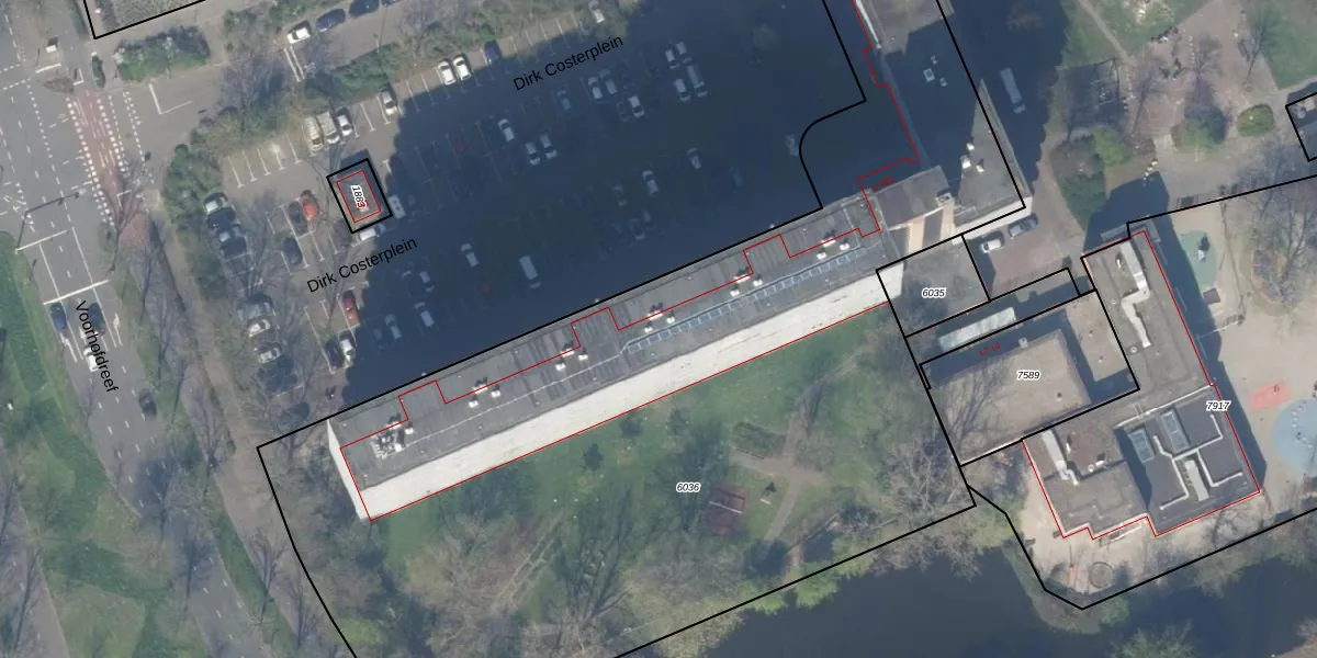 Het perceel waarop Dirk Costerplein 10 staat heeft een oppervlakte van 6065 m². Dit is een zeer groot perceel. De perceeloppervlakte wordt geregistreerd door het Kadaster. Gedetailleerde informatie over de maten van dit perceel kunt u vinden in het rapport Kadastrale kaart met maatvoering van Dirk Costerplein 10.