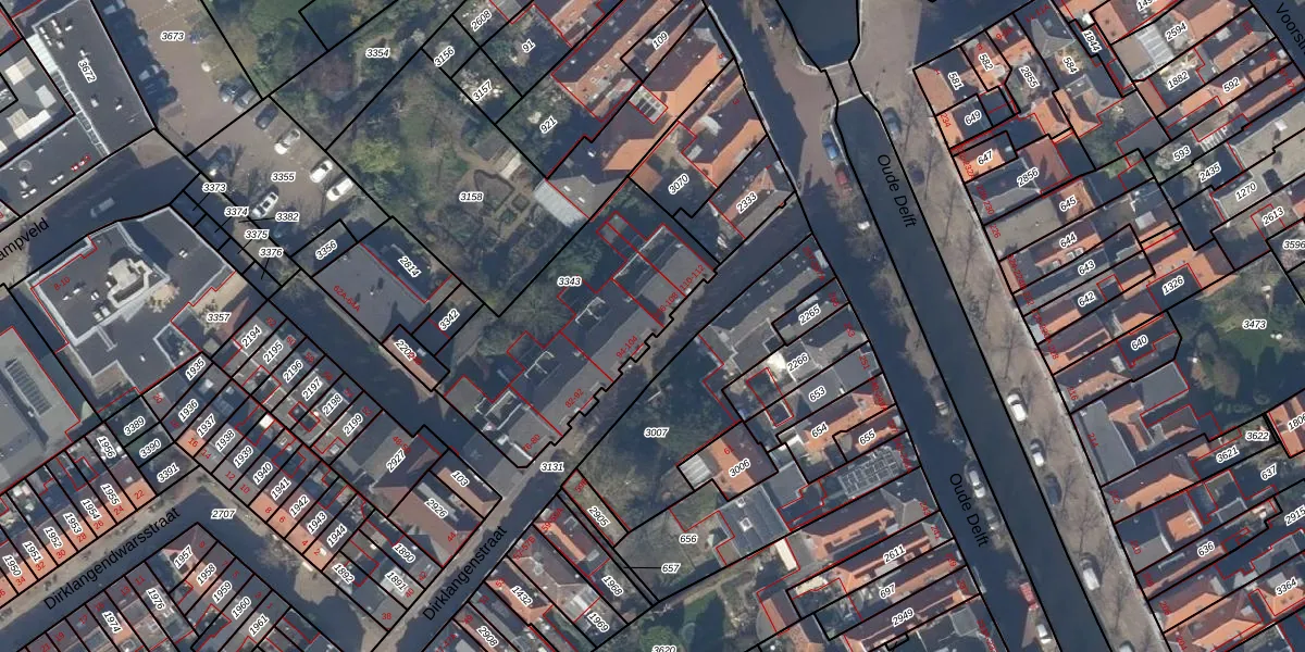 Dirklangenstraat 104 is gelegen op kadastraal perceel DEL00B3343. Deze kadastrale aanduiding is uniek en wordt gebruikt door het Kadaster om eigendomsrechten en andere zakelijke rechten vast te leggen. Het perceel maakt onderdeel uit van de kadastrale gemeente Delft.