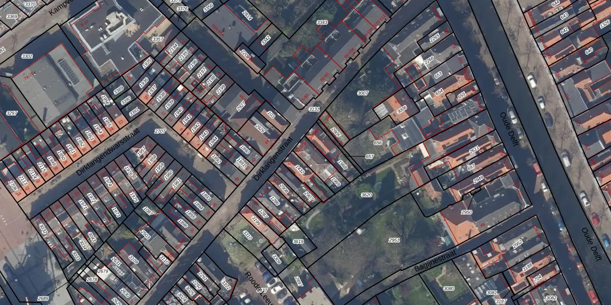 Dirklangenstraat 57-A is gelegen op kadastraal perceel DEL00B1969. Deze kadastrale aanduiding is uniek en wordt gebruikt door het Kadaster om eigendomsrechten en andere zakelijke rechten vast te leggen. Het perceel maakt onderdeel uit van de kadastrale gemeente Delft.