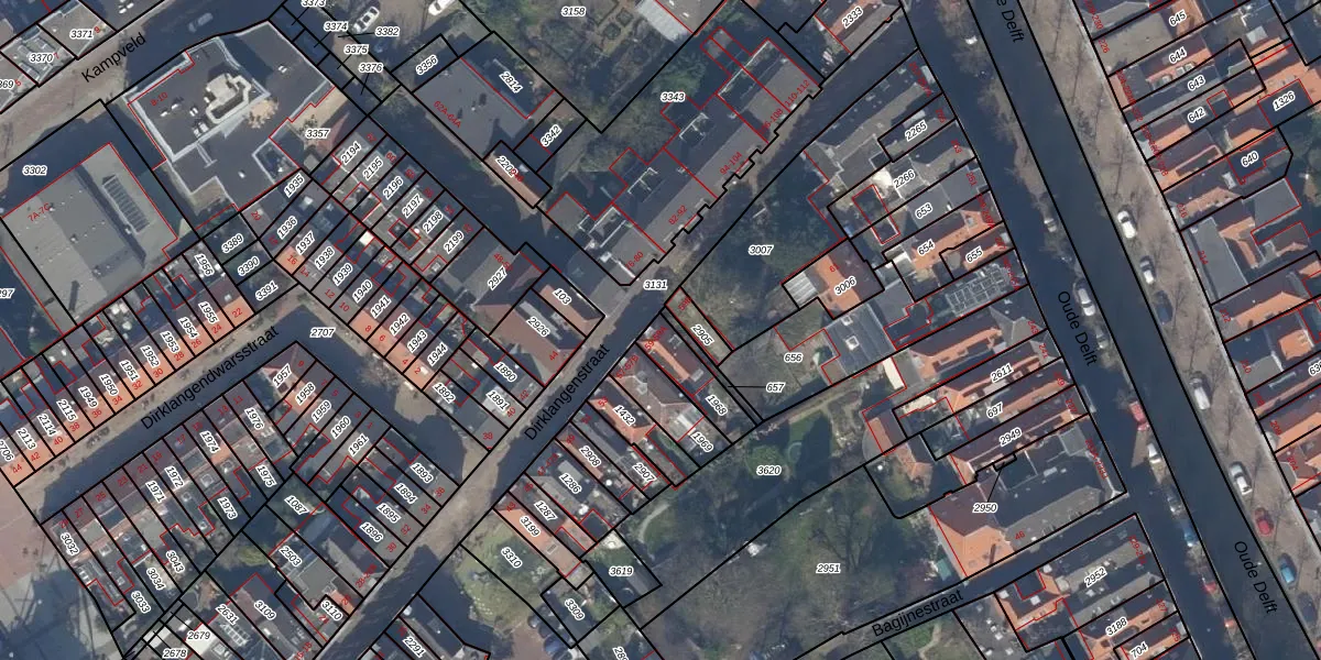 Dirklangenstraat 59 is gelegen op kadastraal perceel DEL00B1968. Deze kadastrale aanduiding is uniek en wordt gebruikt door het Kadaster om eigendomsrechten en andere zakelijke rechten vast te leggen. Het perceel maakt onderdeel uit van de kadastrale gemeente Delft.