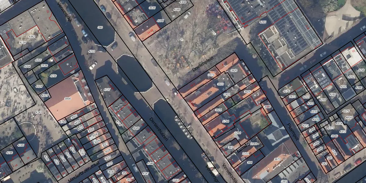 Doelenplein 1-B is gelegen op kadastraal perceel DEL00C3373. Deze kadastrale aanduiding is uniek en wordt gebruikt door het Kadaster om eigendomsrechten en andere zakelijke rechten vast te leggen. Het perceel maakt onderdeel uit van de kadastrale gemeente Delft.
