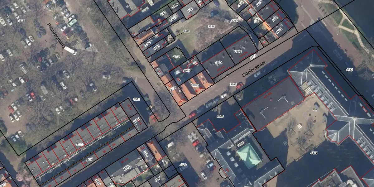 Het perceel waarop Doelenstraat 92 staat heeft een oppervlakte van 161 m². Dit is een middelgroot perceel. De perceeloppervlakte wordt geregistreerd door het Kadaster. Gedetailleerde informatie over de maten van dit perceel kunt u vinden in het rapport Kadastrale kaart met maatvoering van Doelenstraat 92.