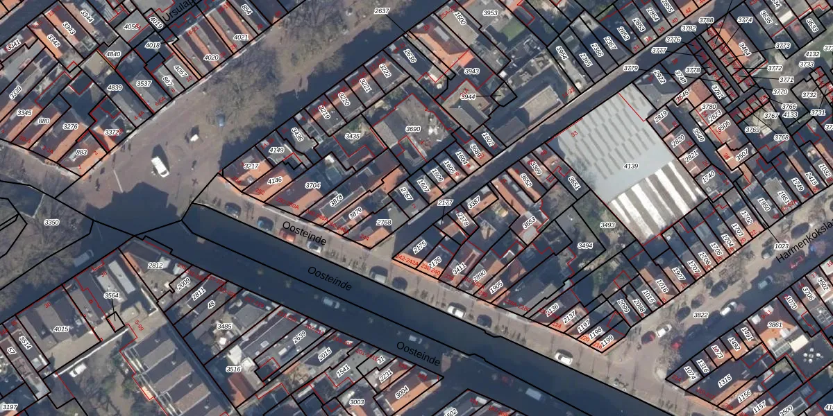 Het perceel waarop Donkerstraat 2 staat heeft een oppervlakte van 49 m². Dit is een klein perceel. De perceeloppervlakte wordt geregistreerd door het Kadaster. Gedetailleerde informatie over de maten van dit perceel kunt u vinden in het rapport Kadastrale kaart met maatvoering van Donkerstraat 2.