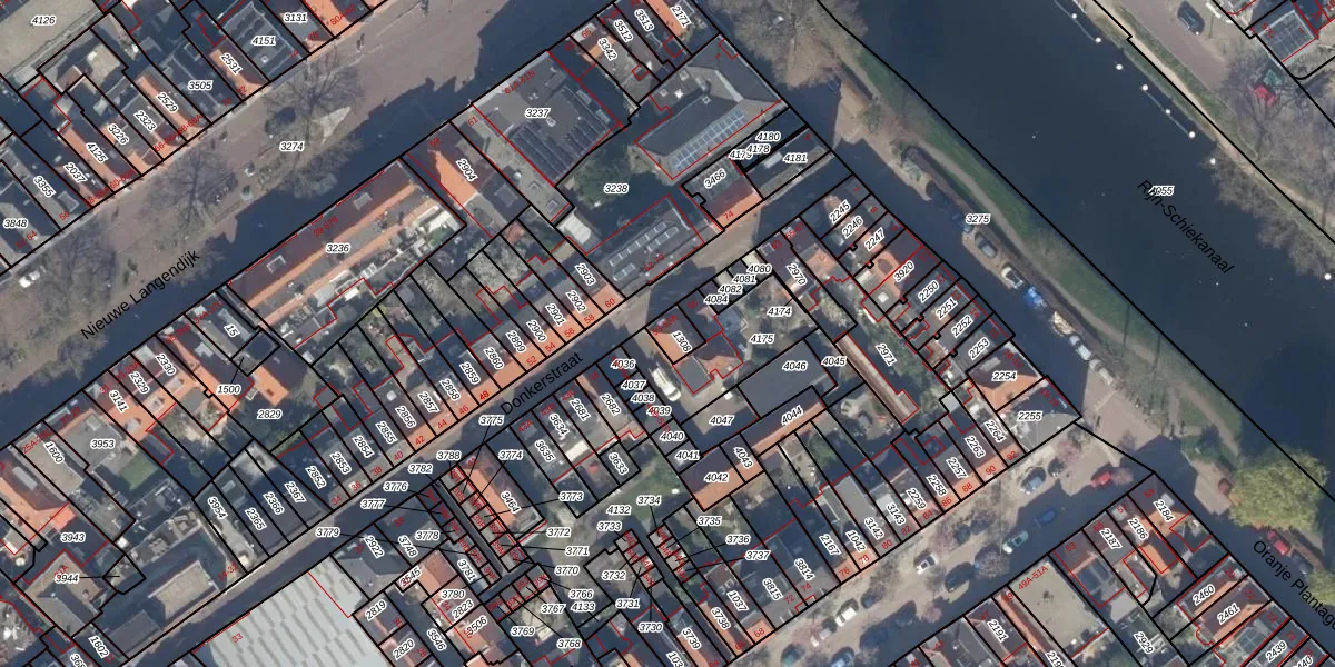 Donkerstraat 53-A is gelegen op kadastraal perceel DEL00D1308. Deze kadastrale aanduiding is uniek en wordt gebruikt door het Kadaster om eigendomsrechten en andere zakelijke rechten vast te leggen. Het perceel maakt onderdeel uit van de kadastrale gemeente Delft.