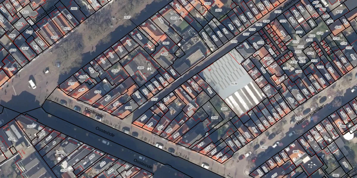 Gebruik de zoekbalk of klik op een perceel voor informatie over de adressen binnen dit perceel.