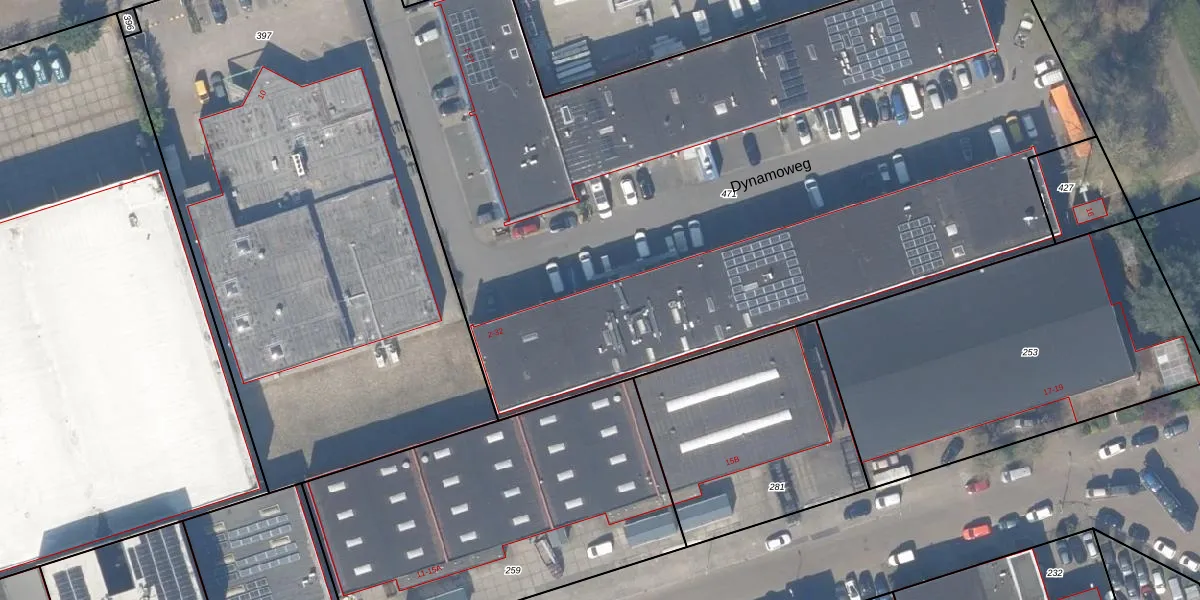 Het perceel waarop Dynamoweg 8 staat heeft een oppervlakte van 5670 m². Dit is een zeer groot perceel. De perceeloppervlakte wordt geregistreerd door het Kadaster. Gedetailleerde informatie over de maten van dit perceel kunt u vinden in het rapport Kadastrale kaart met maatvoering van Dynamoweg 8.