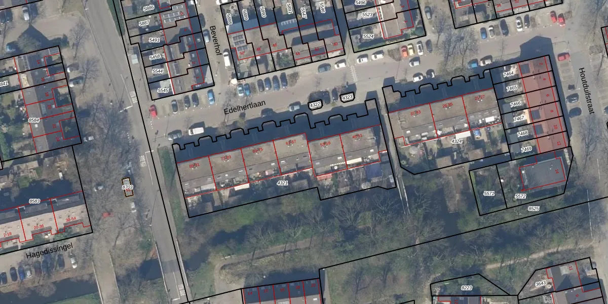 Edelhertlaan 63 is gelegen op kadastraal perceel DEL00R4321. Deze kadastrale aanduiding is uniek en wordt gebruikt door het Kadaster om eigendomsrechten en andere zakelijke rechten vast te leggen. Het perceel maakt onderdeel uit van de kadastrale gemeente Delft.