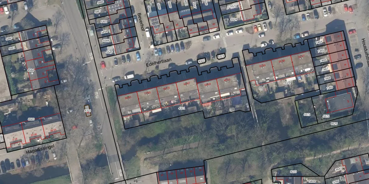 Edelhertlaan 65 is gelegen op kadastraal perceel DEL00R4321. Deze kadastrale aanduiding is uniek en wordt gebruikt door het Kadaster om eigendomsrechten en andere zakelijke rechten vast te leggen. Het perceel maakt onderdeel uit van de kadastrale gemeente Delft.