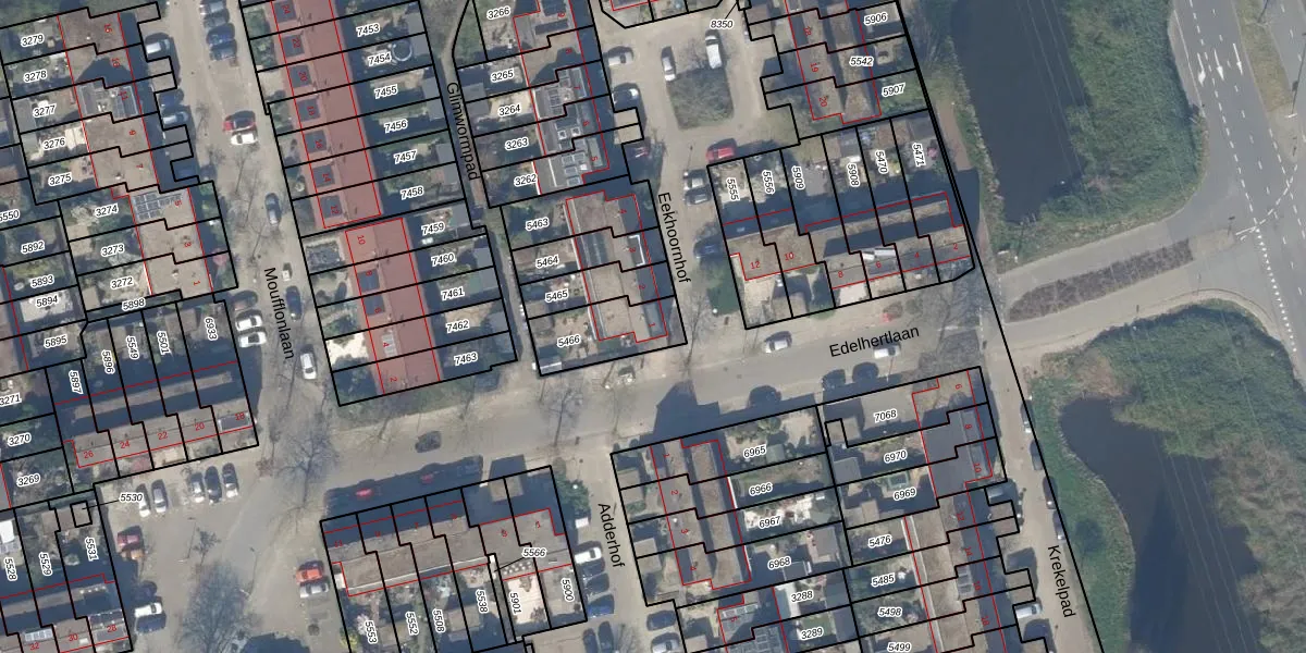 Het perceel waarop Eekhoornhof 1 staat heeft een oppervlakte van 195 m². Dit is een middelgroot perceel. De perceeloppervlakte wordt geregistreerd door het Kadaster. Gedetailleerde informatie over de maten van dit perceel kunt u vinden in het rapport Kadastrale kaart met maatvoering van Eekhoornhof 1.