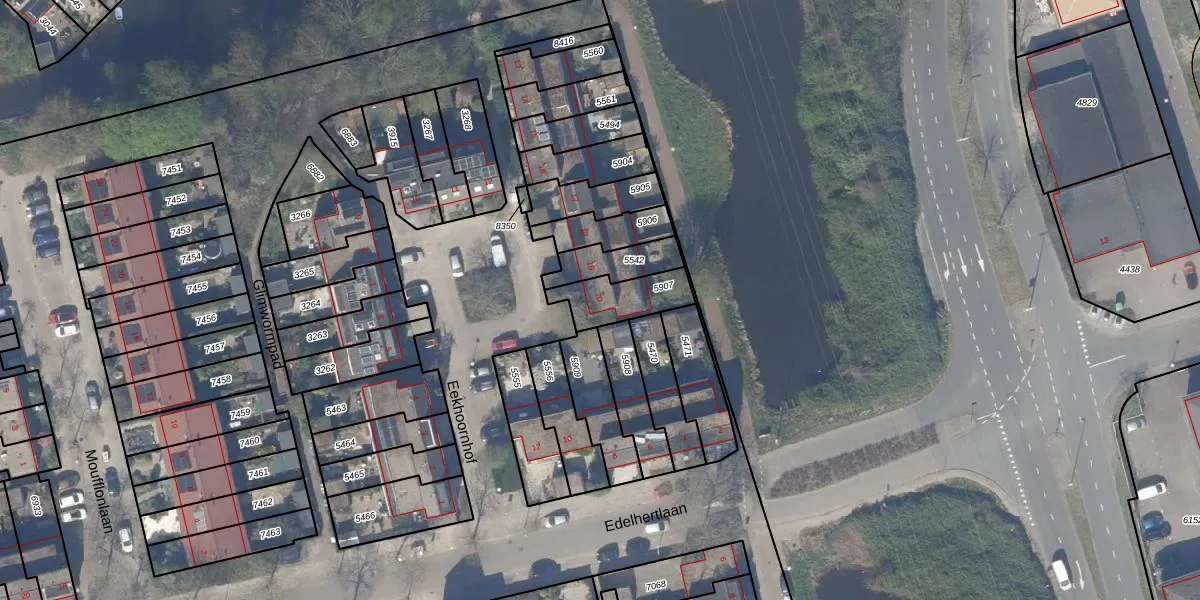 Gebruik de zoekbalk of klik op een perceel voor informatie over de adressen binnen dit perceel.