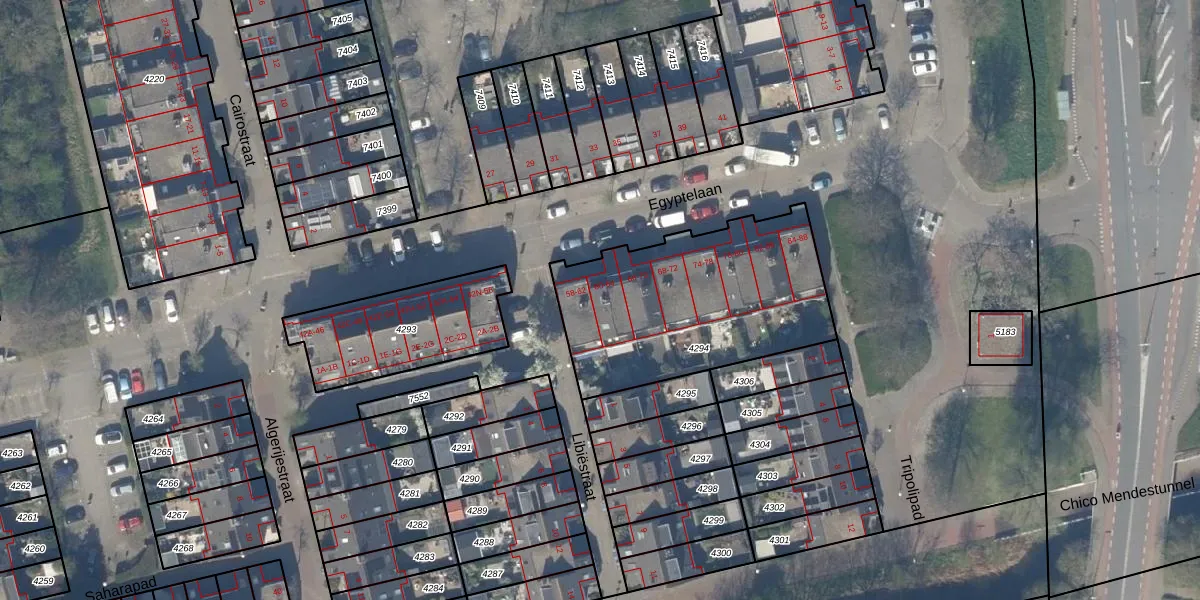 Het perceel waarop Egyptelaan 64 staat heeft een oppervlakte van 999 m². Dit is een groot perceel. De perceeloppervlakte wordt geregistreerd door het Kadaster. Gedetailleerde informatie over de maten van dit perceel kunt u vinden in het rapport Kadastrale kaart met maatvoering van Egyptelaan 64.