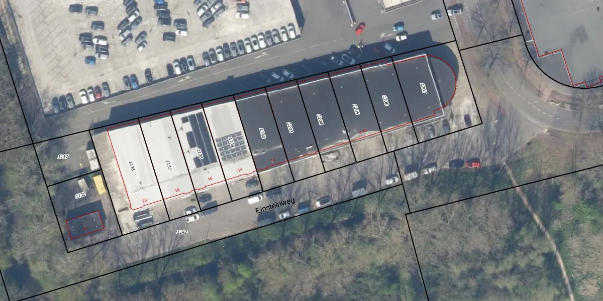 Einsteinweg 10 is gelegen op kadastraal perceel DEL00H1203. Deze kadastrale aanduiding is uniek en wordt gebruikt door het Kadaster om eigendomsrechten en andere zakelijke rechten vast te leggen. Het perceel maakt onderdeel uit van de kadastrale gemeente Delft.