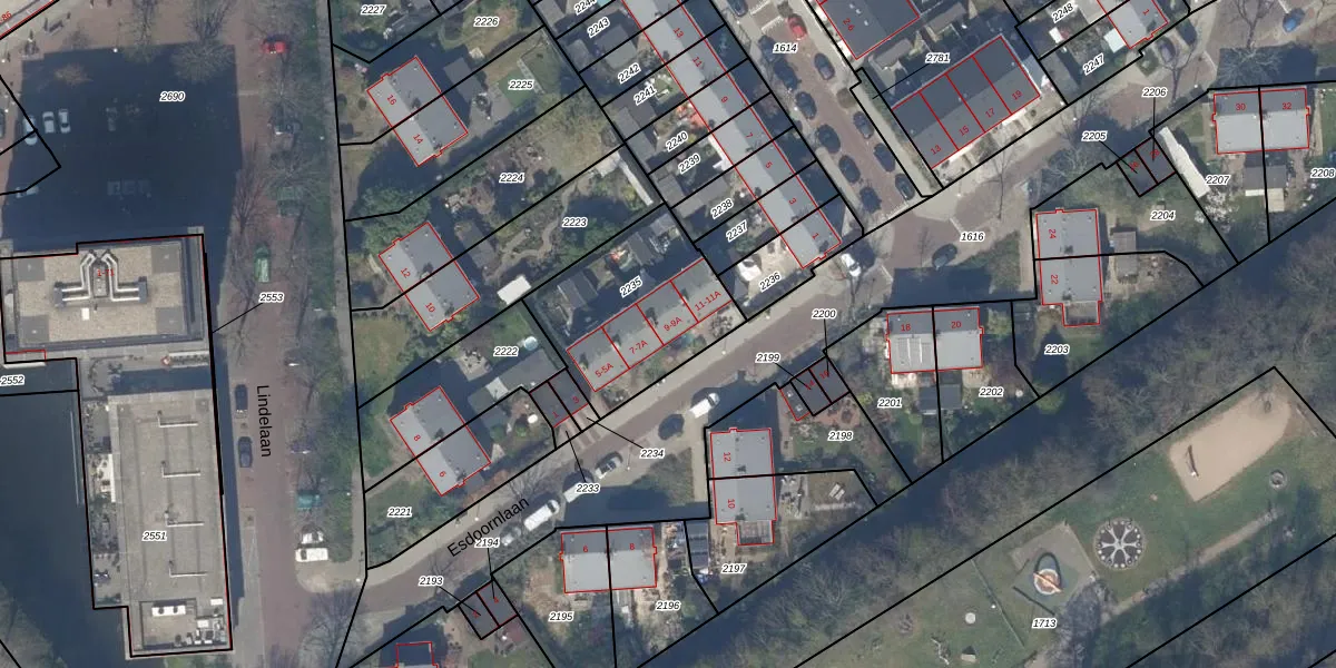 Het perceel waarop Esdoornlaan 9 staat heeft een oppervlakte van 565 m². Dit is een groot perceel. De perceeloppervlakte wordt geregistreerd door het Kadaster. Gedetailleerde informatie over de maten van dit perceel kunt u vinden in het rapport Kadastrale kaart met maatvoering van Esdoornlaan 9.