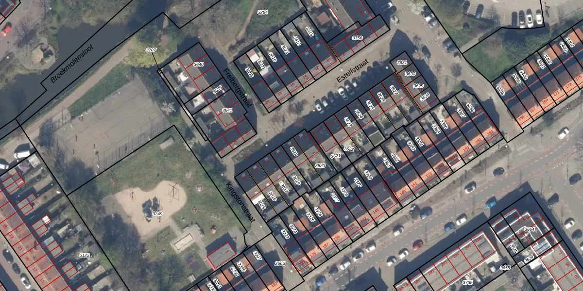 Het perceel waarop Estelístraat 17 staat heeft een oppervlakte van 94 m². Dit is een klein perceel. De perceeloppervlakte wordt geregistreerd door het Kadaster. Gedetailleerde informatie over de maten van dit perceel kunt u vinden in het rapport Kadastrale kaart met maatvoering van Estelístraat 17.