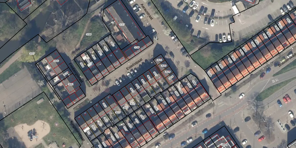 Het perceel waarop Estelístraat 3 staat heeft een oppervlakte van 84 m². Dit is een klein perceel. De perceeloppervlakte wordt geregistreerd door het Kadaster. Gedetailleerde informatie over de maten van dit perceel kunt u vinden in het rapport Kadastrale kaart met maatvoering van Estelístraat 3.