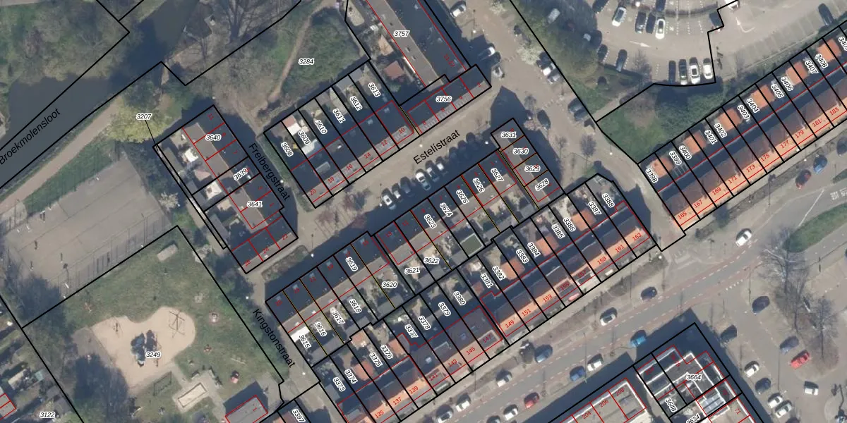 Het perceel waarop Estelístraat 9 staat heeft een oppervlakte van 84 m². Dit is een klein perceel. De perceeloppervlakte wordt geregistreerd door het Kadaster. Gedetailleerde informatie over de maten van dit perceel kunt u vinden in het rapport Kadastrale kaart met maatvoering van Estelístraat 9.