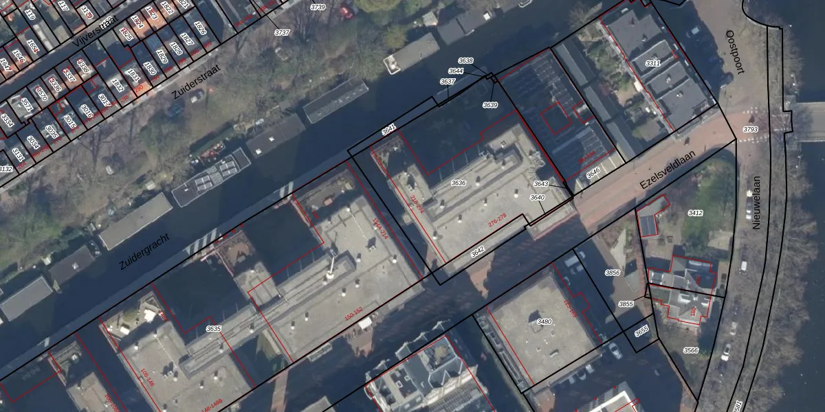 Het adres is gelegen op perceel 3636 in de sectie E en de kadastrale gemeente Delft. De kadastrale aanduiding is aldus DEL00-E-3636. De gemiddelde perceeloppervlakte in de kadastrale gemeente Delft is 923,41 m². Dit perceel is met zijn 1353 m² dus groter dan gemiddeld. De grootste perceeloppervlakte in de kadastrale gemeente is 64,1 ha. De kleinste oppervlakte bedraagt 0 m². Er zijn 32 adressen aanwezig op het perceel. De huidige grenzen van het perceel zijn digitaal in de Basisregistratie Kadaster (BRK) geregistreerd op 10-12-2004.