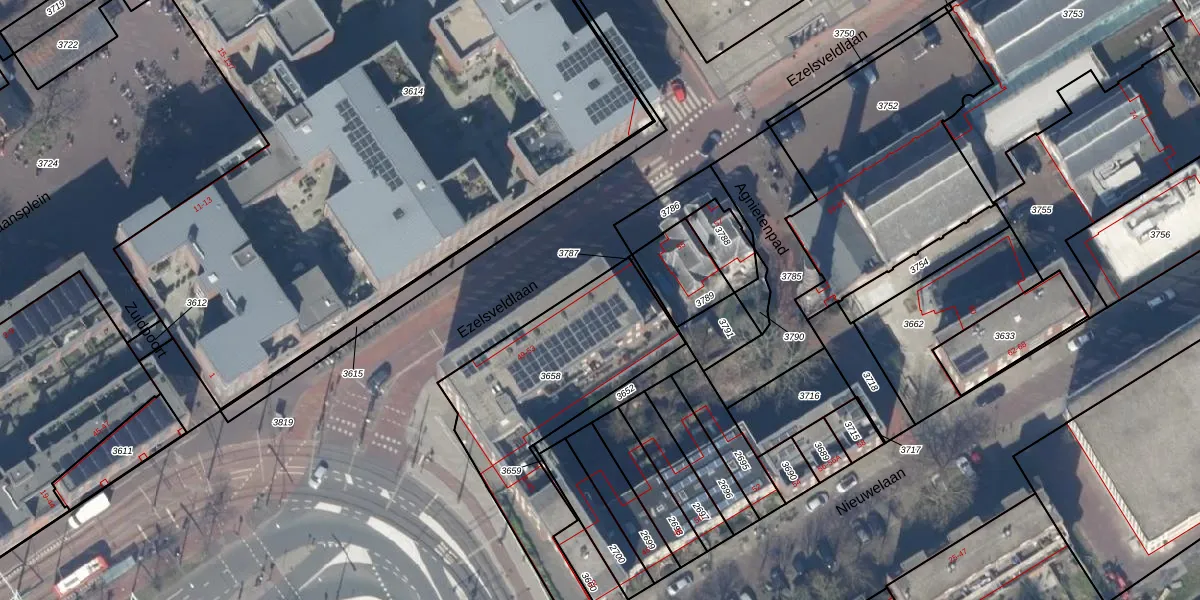 Ezelsveldlaan 53 is gelegen op kadastraal perceel DEL00E3658. Deze kadastrale aanduiding is uniek en wordt gebruikt door het Kadaster om eigendomsrechten en andere zakelijke rechten vast te leggen. Het perceel maakt onderdeel uit van de kadastrale gemeente Delft.