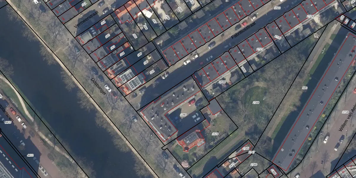 Fabritiusstraat 41 is gelegen op kadastraal perceel DEL00P1280. Deze kadastrale aanduiding is uniek en wordt gebruikt door het Kadaster om eigendomsrechten en andere zakelijke rechten vast te leggen. Het perceel maakt onderdeel uit van de kadastrale gemeente Delft.