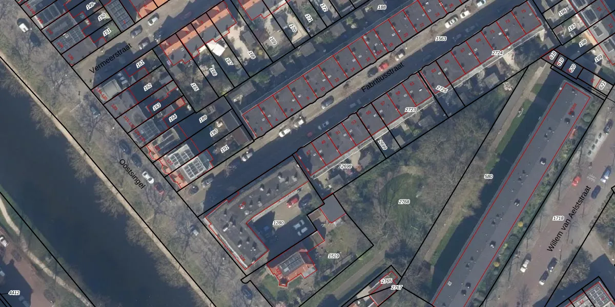Het perceel waarop Fabritiusstraat 47 staat heeft een oppervlakte van 445 m². Dit is een groot perceel. De perceeloppervlakte wordt geregistreerd door het Kadaster. Gedetailleerde informatie over de maten van dit perceel kunt u vinden in het rapport Kadastrale kaart met maatvoering van Fabritiusstraat 47.