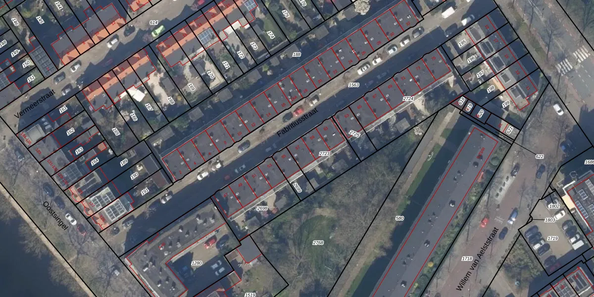 Fabritiusstraat 57 is gelegen op kadastraal perceel DEL00P2723. Deze kadastrale aanduiding is uniek en wordt gebruikt door het Kadaster om eigendomsrechten en andere zakelijke rechten vast te leggen. Het perceel maakt onderdeel uit van de kadastrale gemeente Delft.