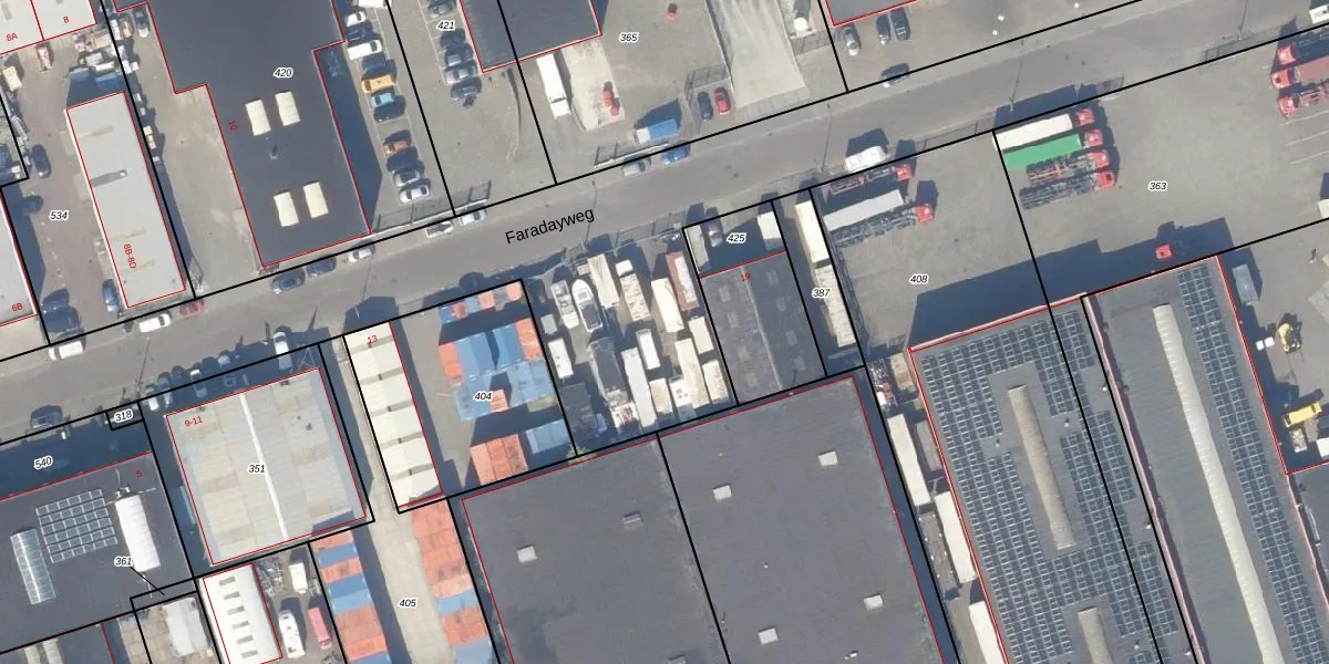 Het perceel waarop Faradayweg 17 staat heeft een oppervlakte van 7,6 ha. Dit is een zeer groot perceel. De perceeloppervlakte wordt geregistreerd door het Kadaster. Gedetailleerde informatie over de maten van dit perceel kunt u vinden in het rapport Kadastrale kaart met maatvoering van Faradayweg 17.