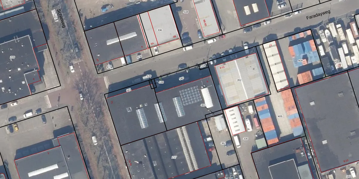 Het perceel waarop Faradayweg 5 staat heeft een oppervlakte van 940 m². Dit is een groot perceel. De perceeloppervlakte wordt geregistreerd door het Kadaster. Gedetailleerde informatie over de maten van dit perceel kunt u vinden in het rapport Kadastrale kaart met maatvoering van Faradayweg 5.
