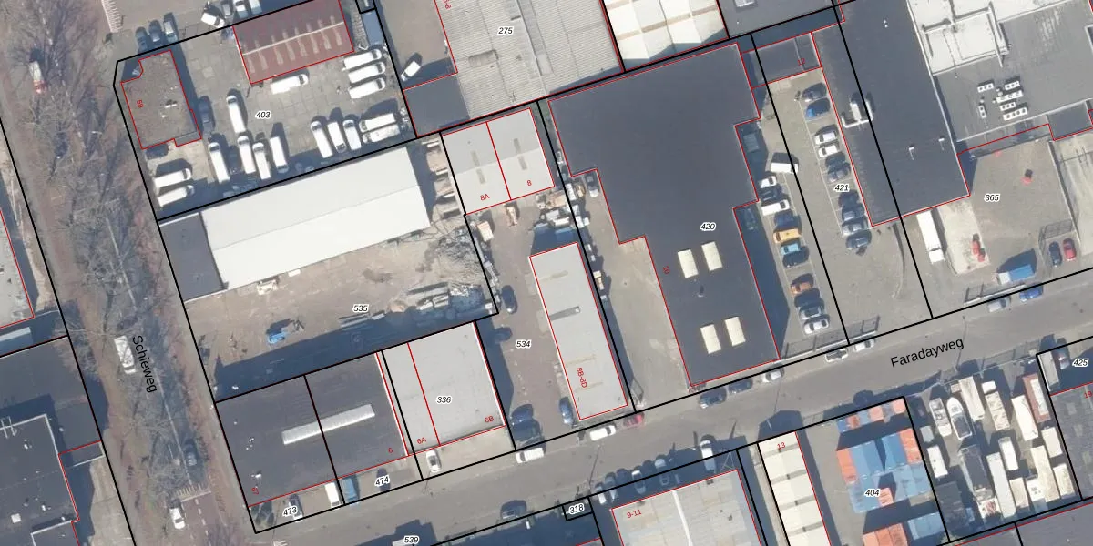 Faradayweg 8-D is gelegen op kadastraal perceel DEL00G534. Deze kadastrale aanduiding is uniek en wordt gebruikt door het Kadaster om eigendomsrechten en andere zakelijke rechten vast te leggen. Het perceel maakt onderdeel uit van de kadastrale gemeente Delft.