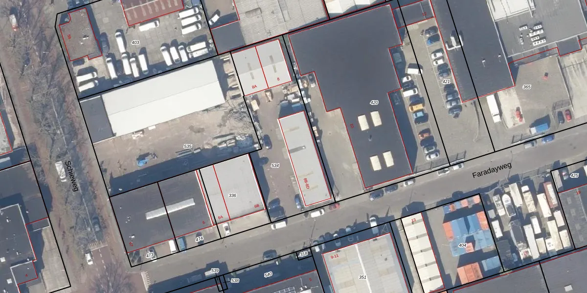 Faradayweg 8-C is gelegen op kadastraal perceel DEL00G534. Deze kadastrale aanduiding is uniek en wordt gebruikt door het Kadaster om eigendomsrechten en andere zakelijke rechten vast te leggen. Het perceel maakt onderdeel uit van de kadastrale gemeente Delft.