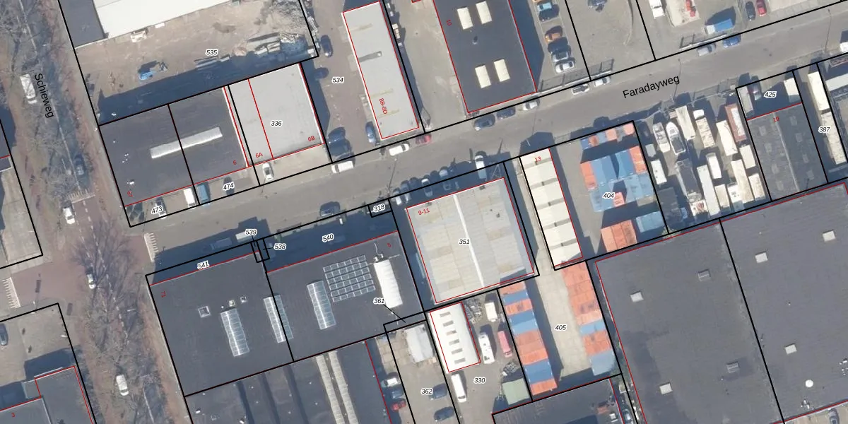 Faradayweg 9 is gelegen op kadastraal perceel DEL00G351. Deze kadastrale aanduiding is uniek en wordt gebruikt door het Kadaster om eigendomsrechten en andere zakelijke rechten vast te leggen. Het perceel maakt onderdeel uit van de kadastrale gemeente Delft.