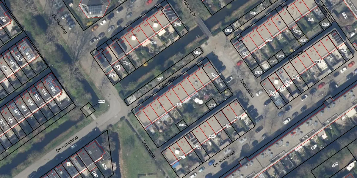 Het perceel waarop Faunapad 6 staat heeft een oppervlakte van 1172 m². Dit is een zeer groot perceel. De perceeloppervlakte wordt geregistreerd door het Kadaster. Gedetailleerde informatie over de maten van dit perceel kunt u vinden in het rapport Kadastrale kaart met maatvoering van Faunapad 6.