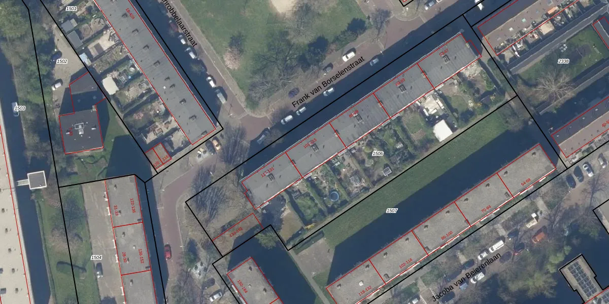 Frank van Borselenstraat 111 is gelegen op kadastraal perceel DEL00O1506. Deze kadastrale aanduiding is uniek en wordt gebruikt door het Kadaster om eigendomsrechten en andere zakelijke rechten vast te leggen. Het perceel maakt onderdeel uit van de kadastrale gemeente Delft.