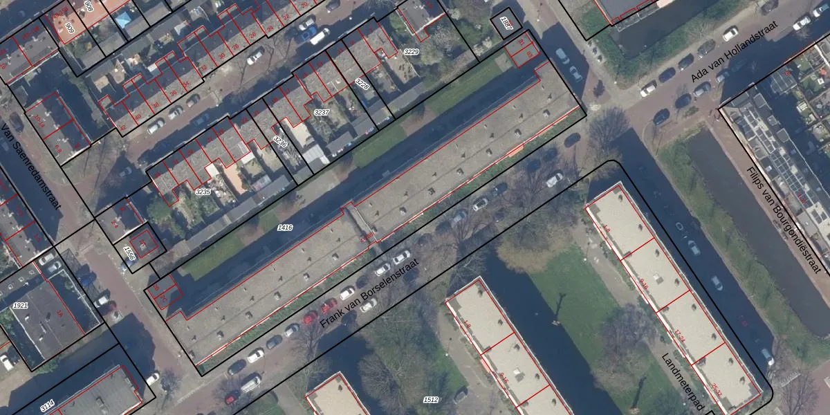 Frank van Borselenstraat 14 is gelegen op kadastraal perceel DEL00O1416. Deze kadastrale aanduiding is uniek en wordt gebruikt door het Kadaster om eigendomsrechten en andere zakelijke rechten vast te leggen. Het perceel maakt onderdeel uit van de kadastrale gemeente Delft.