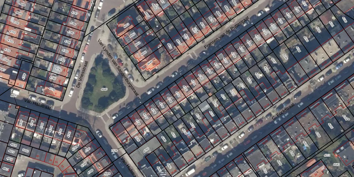 Gebruik de zoekbalk of klik op een perceel voor informatie over de adressen binnen dit perceel.