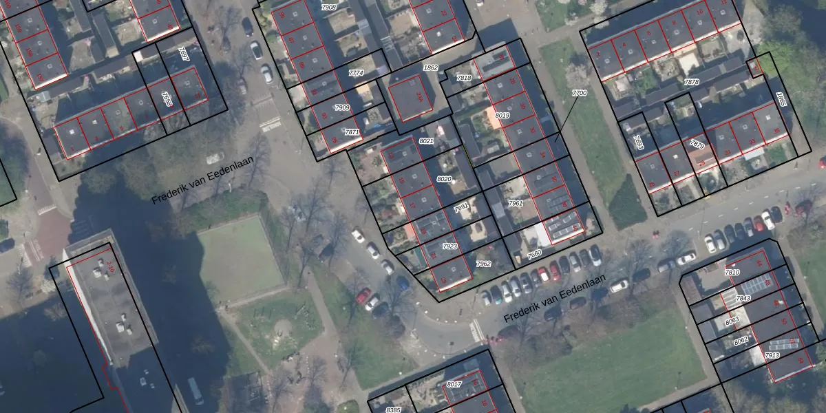 Frederik van Eedenlaan 17 is gelegen op kadastraal perceel DEL00R8020. Deze kadastrale aanduiding is uniek en wordt gebruikt door het Kadaster om eigendomsrechten en andere zakelijke rechten vast te leggen. Het perceel maakt onderdeel uit van de kadastrale gemeente Delft.