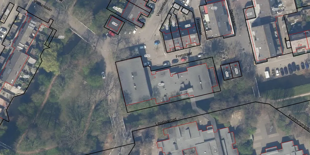 Het perceel waarop Fretstraat 2 staat heeft een oppervlakte van 1594 m². Dit is een zeer groot perceel. De perceeloppervlakte wordt geregistreerd door het Kadaster. Gedetailleerde informatie over de maten van dit perceel kunt u vinden in het rapport Kadastrale kaart met maatvoering van Fretstraat 2.