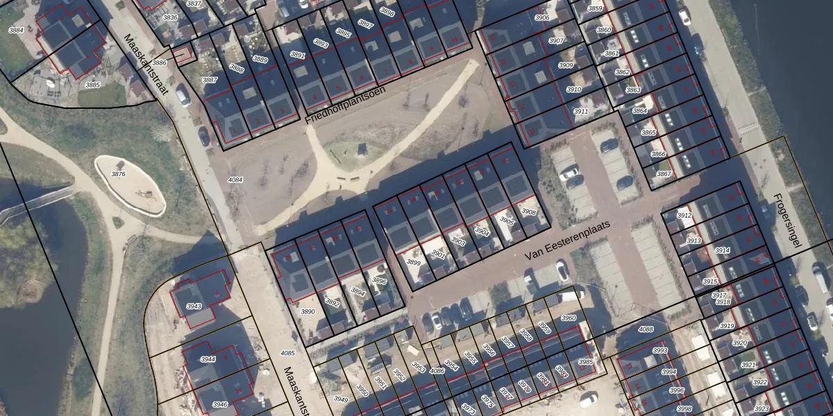 Gebruik de zoekbalk of klik op een perceel voor informatie over de adressen binnen dit perceel.