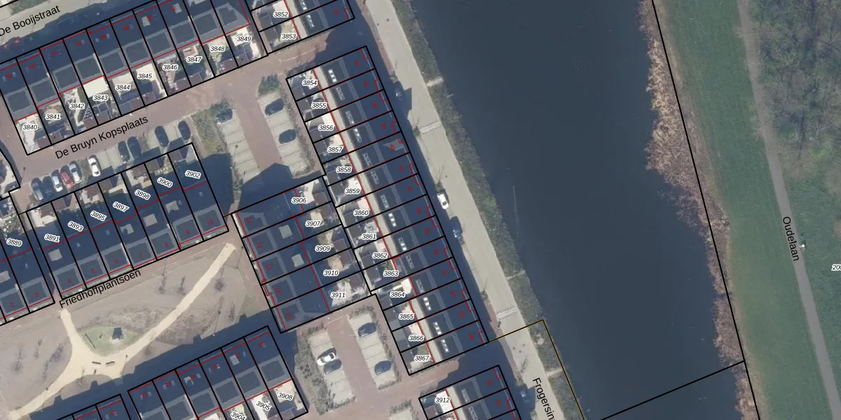 Frogersingel 46 is gelegen op kadastraal perceel DEL00K3861. Deze kadastrale aanduiding is uniek en wordt gebruikt door het Kadaster om eigendomsrechten en andere zakelijke rechten vast te leggen. Het perceel maakt onderdeel uit van de kadastrale gemeente Delft.