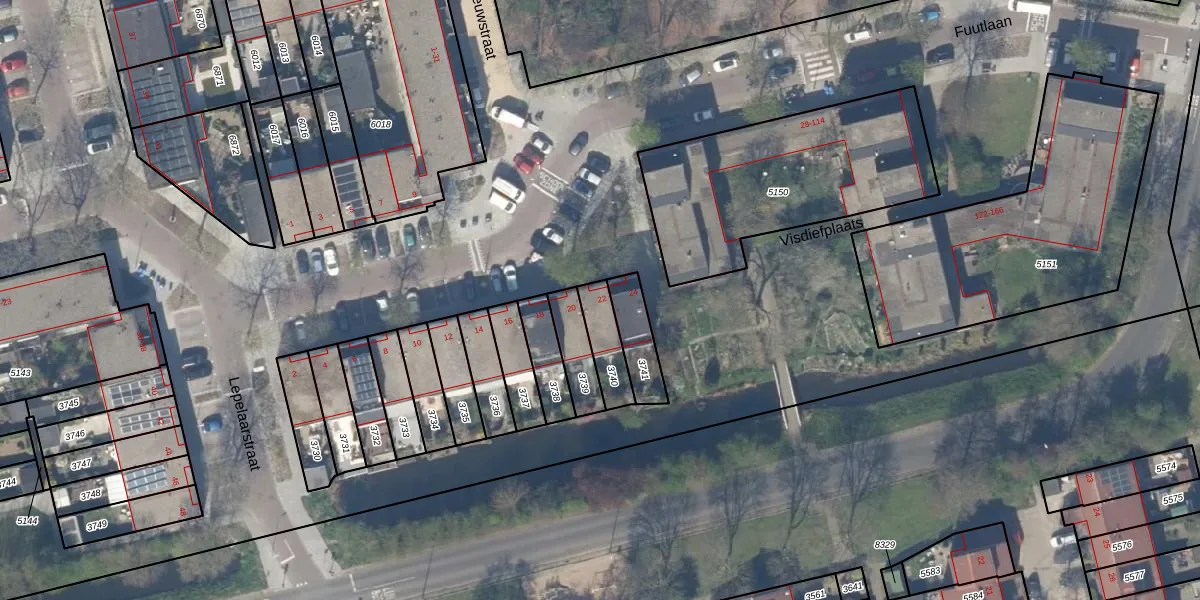 Gebruik de zoekbalk of klik op een perceel voor informatie over de adressen binnen dit perceel.