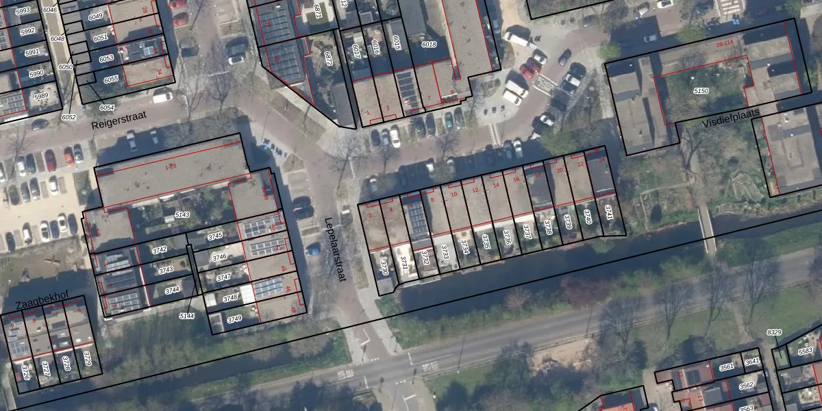 Gebruik de zoekbalk of klik op een perceel voor informatie over de adressen binnen dit perceel.