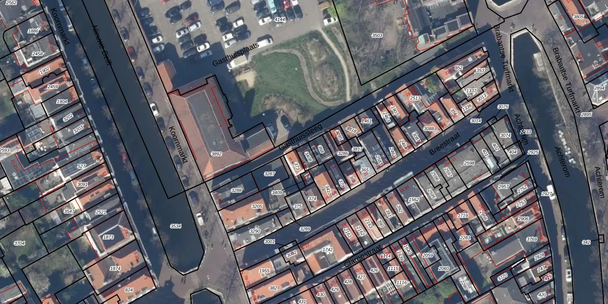 Het perceel waarop Gasthuissteeg 7 staat heeft een oppervlakte van 45 m². Dit is een klein perceel. De perceeloppervlakte wordt geregistreerd door het Kadaster. Gedetailleerde informatie over de maten van dit perceel kunt u vinden in het rapport Kadastrale kaart met maatvoering van Gasthuissteeg 7.