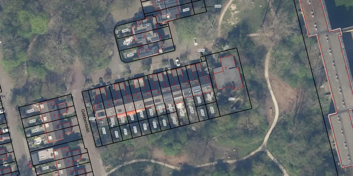 Gebbenlaan 27 is gelegen op kadastraal perceel DEL00R5007. Deze kadastrale aanduiding is uniek en wordt gebruikt door het Kadaster om eigendomsrechten en andere zakelijke rechten vast te leggen. Het perceel maakt onderdeel uit van de kadastrale gemeente Delft.