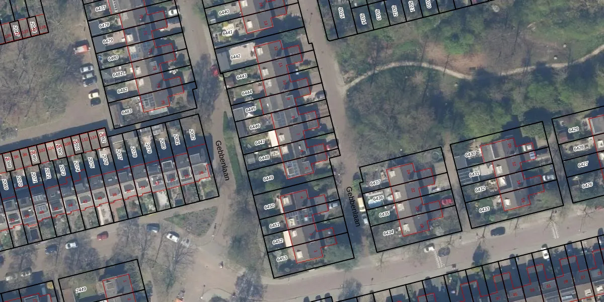 Gebbenlaan 6 is gelegen op kadastraal perceel DEL00R6448. Deze kadastrale aanduiding is uniek en wordt gebruikt door het Kadaster om eigendomsrechten en andere zakelijke rechten vast te leggen. Het perceel maakt onderdeel uit van de kadastrale gemeente Delft.