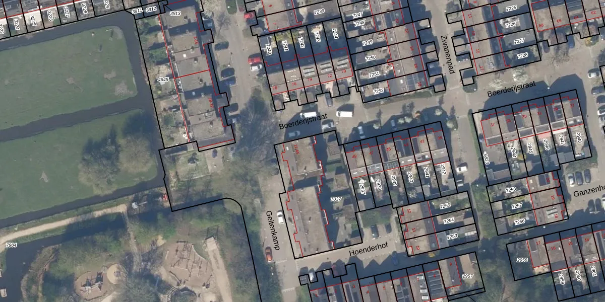 Geitenkamp 15 is gelegen op kadastraal perceel DEL00R7037. Deze kadastrale aanduiding is uniek en wordt gebruikt door het Kadaster om eigendomsrechten en andere zakelijke rechten vast te leggen. Het perceel maakt onderdeel uit van de kadastrale gemeente Delft.