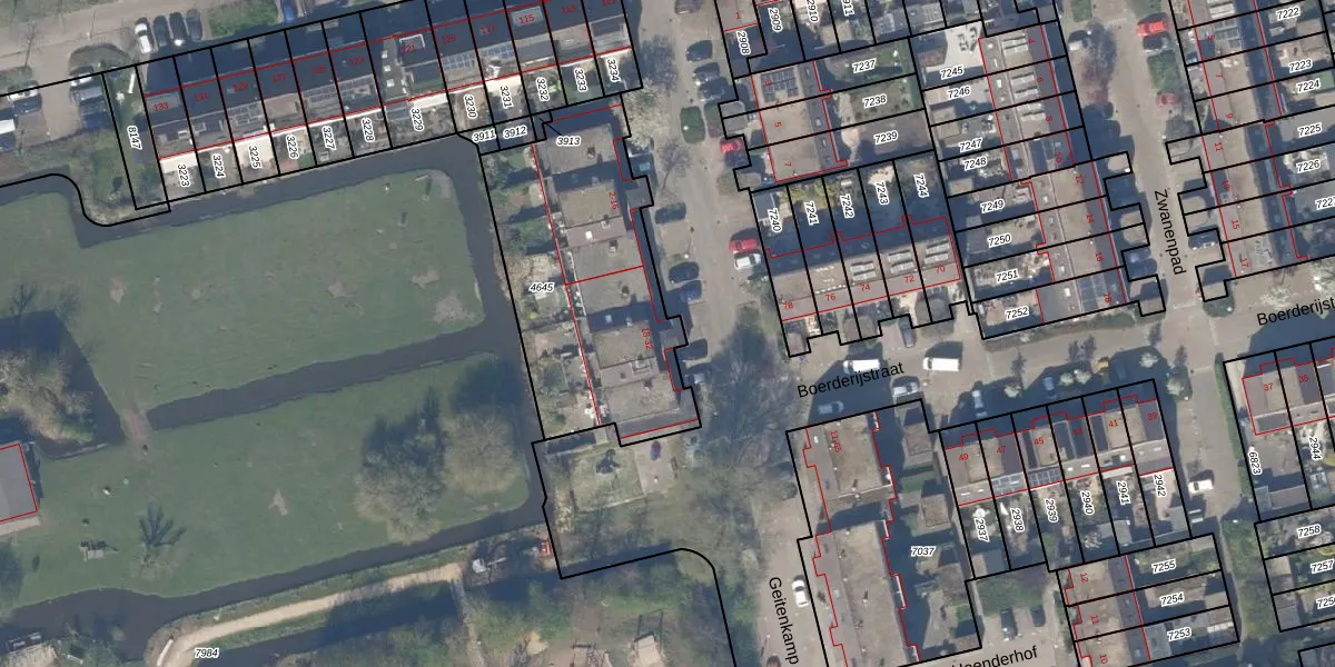 Geitenkamp 24 is gelegen op kadastraal perceel DEL00R4645. Deze kadastrale aanduiding is uniek en wordt gebruikt door het Kadaster om eigendomsrechten en andere zakelijke rechten vast te leggen. Het perceel maakt onderdeel uit van de kadastrale gemeente Delft.