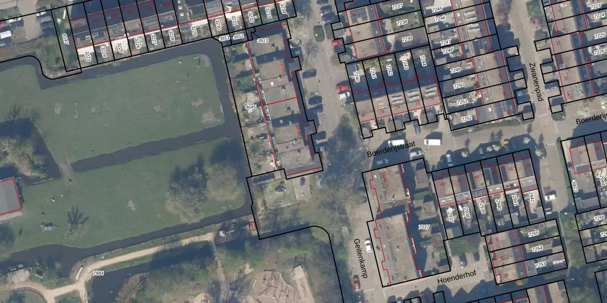 Geitenkamp 32 is gelegen op kadastraal perceel DEL00R4645. Deze kadastrale aanduiding is uniek en wordt gebruikt door het Kadaster om eigendomsrechten en andere zakelijke rechten vast te leggen. Het perceel maakt onderdeel uit van de kadastrale gemeente Delft.