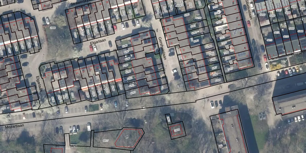 Gebruik de zoekbalk of klik op een perceel voor informatie over de adressen binnen dit perceel.